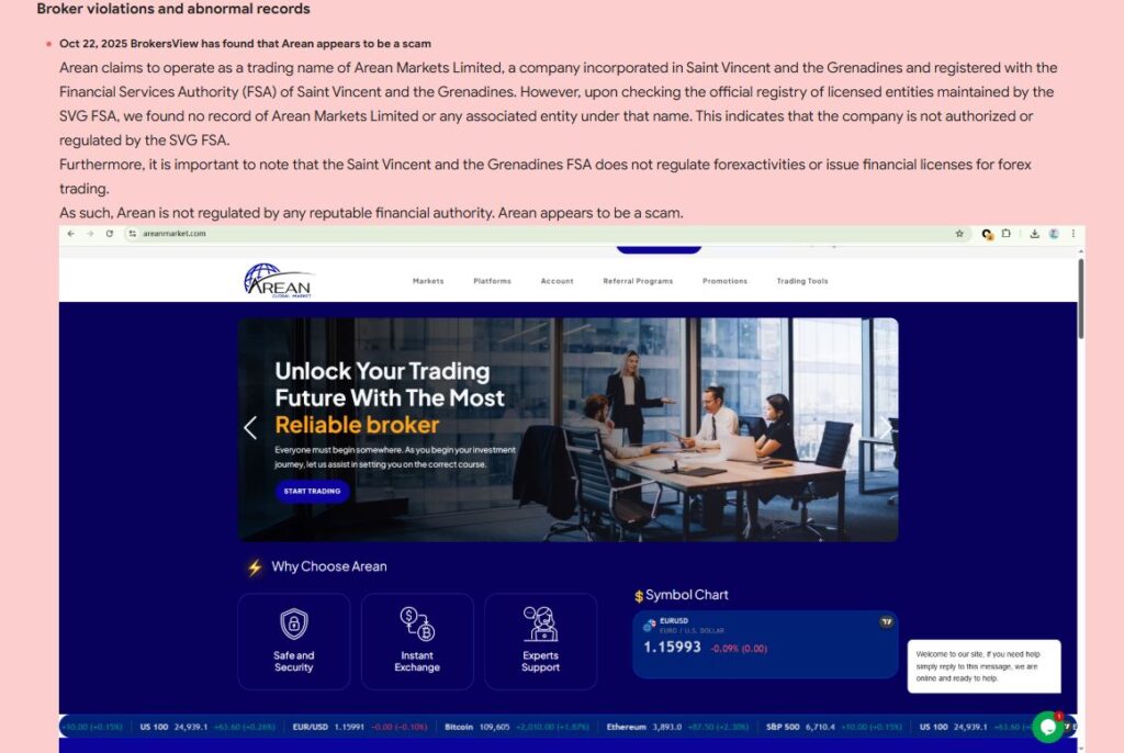 Брокер Arean Market (areanmarket.com) заявляет, что предоставляет трейдерам доступ к международным финансовым рынкам. На сайте обещают простую торговлю, надёжную платформу и высокий уровень поддержки. Однако реальный анализ показывает, что многие заявления брокера не подтверждены фактами.