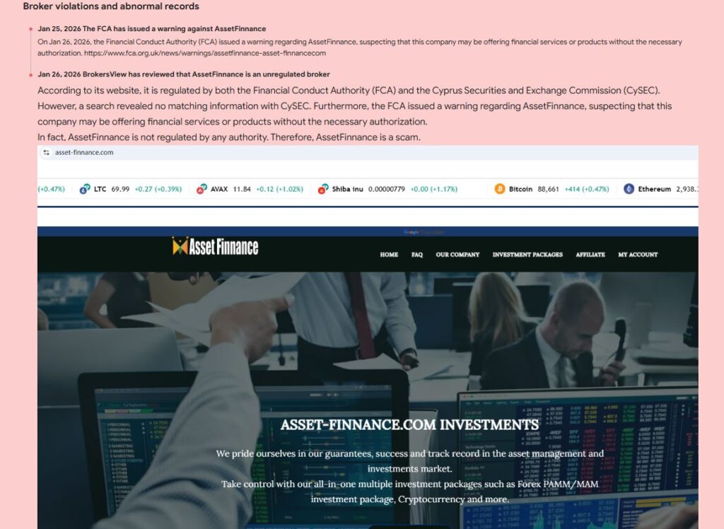 Asset-Finnance (asset-finnance.com) вызывает обоснованные опасения у трейдеров.