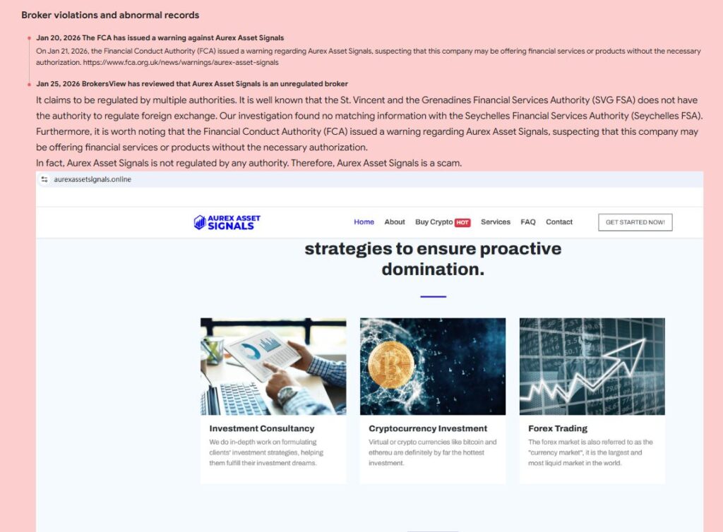 AurexAssetSignals (aurexassetsignals.online) вызывает обоснованные опасения у трейдеров.