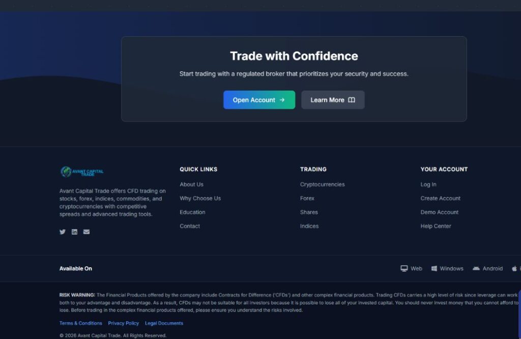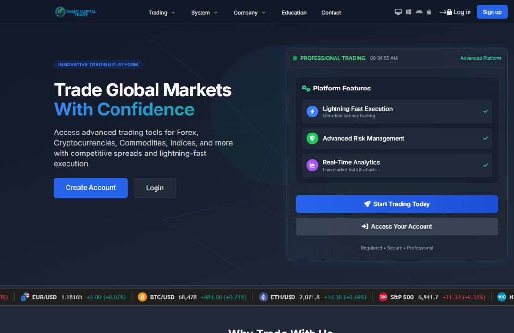 AvantCapitalTrade позиционирует себя как международную торговую платформу.