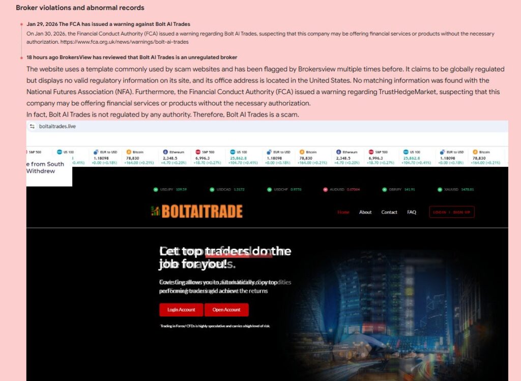 BoltaITrades (boltaitrades.live) позиционирует себя как брокер для онлайн‑торговли.