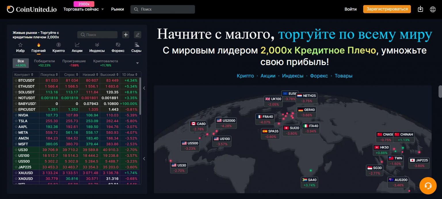 CoinUnited.io (coinunited.io) позиционирует себя как ведущая платформа для торговли криптовалютами, предлагая кредитное плечо до 2000x и доступ к более чем 19 000 рынкам. Однако, несмотря на заявления о популярности и инновационности, конкретные данные о компании, такие как информация о владельцах и юридический адрес, отсутствуют.