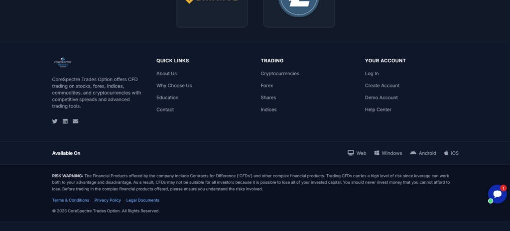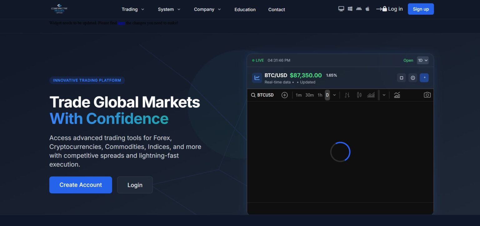 CoreSpectre предлагает торговлю через веб-платформу.