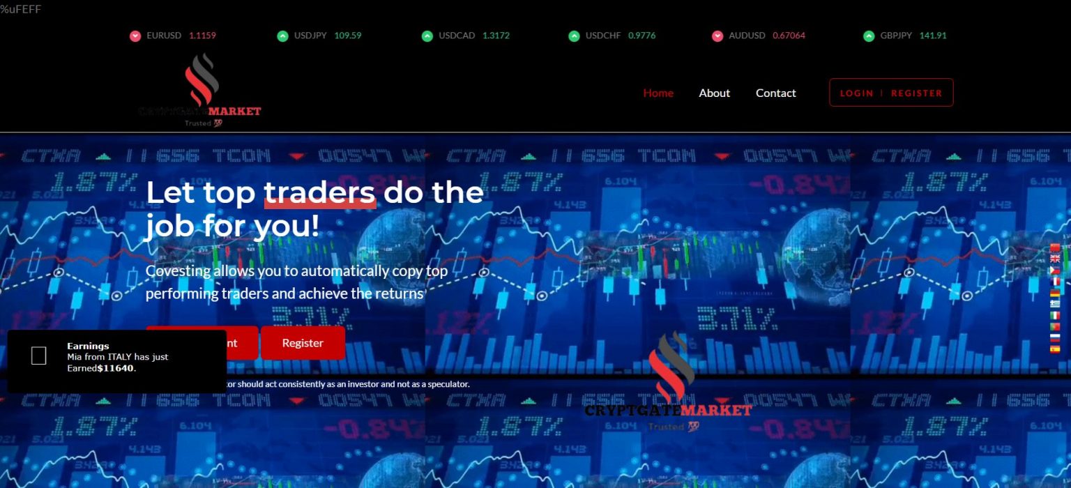 CryptGateMarket.com позиционирует себя как криптовалютного брокера с глобальной лицензией. Однако, при детальном анализе возникают серьёзные сомнения в его легитимности.