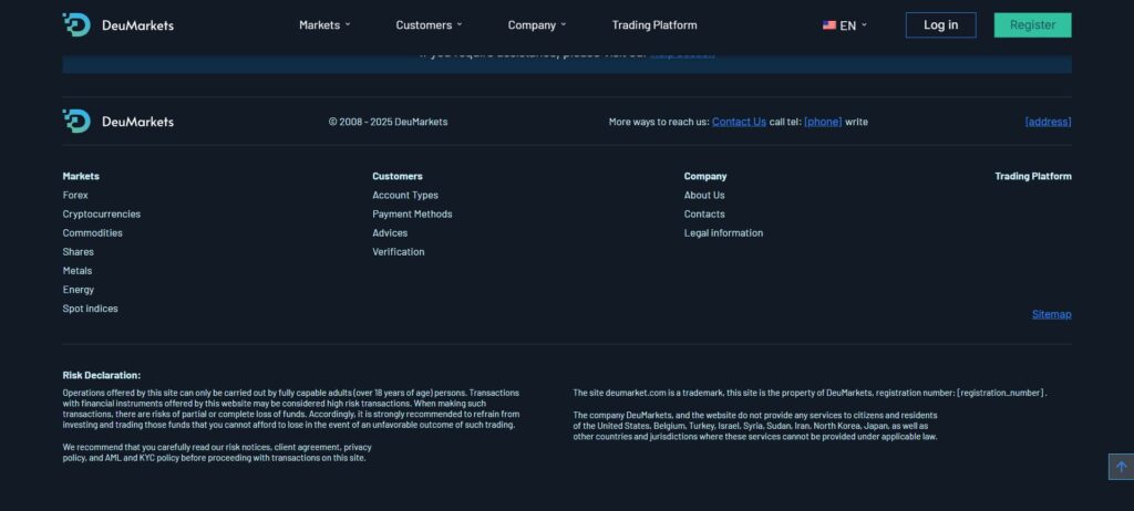 Брокер DeuMarket оказывает услуги через собственный сайт.