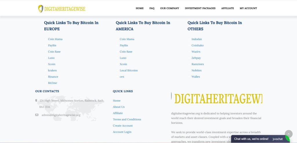 DigitaHeritageWise (digitaheritagewise.org) позиционирует себя как онлайн-брокера для трейдинга.