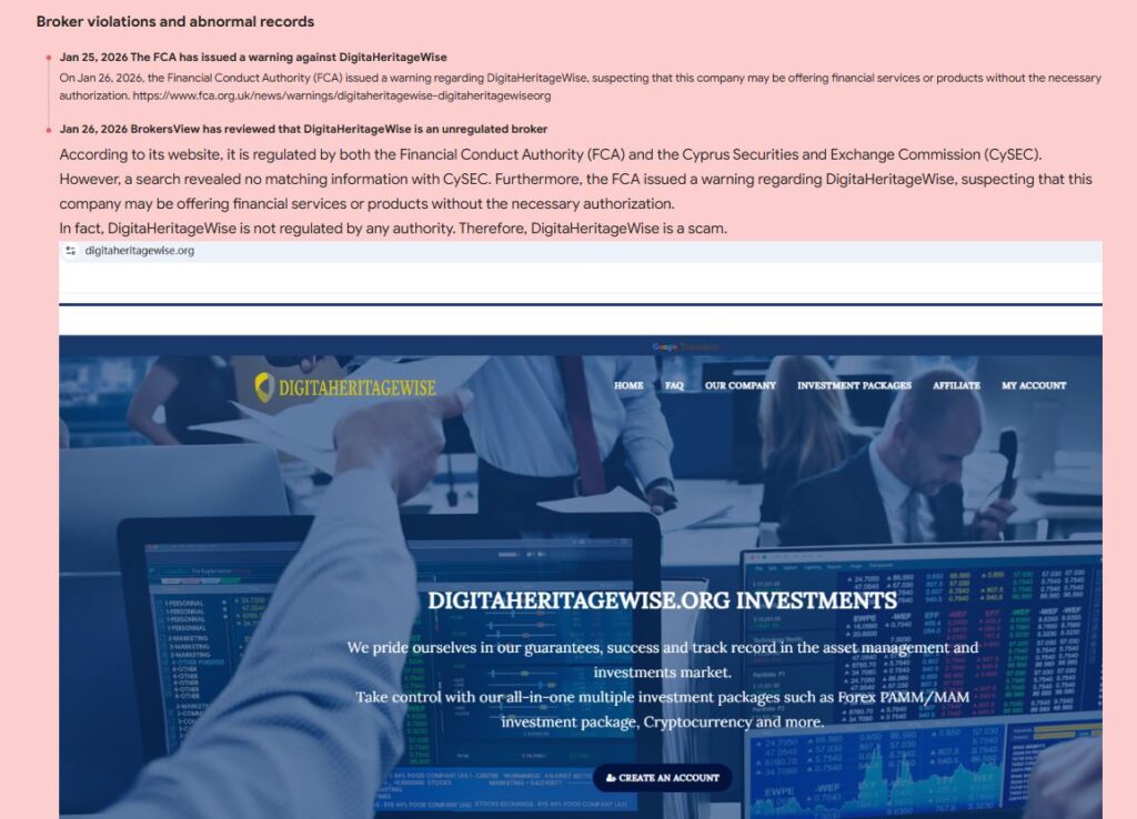 DigitaHeritageWise (digitaheritagewise.org) вызывает обоснованные опасения у трейдеров.