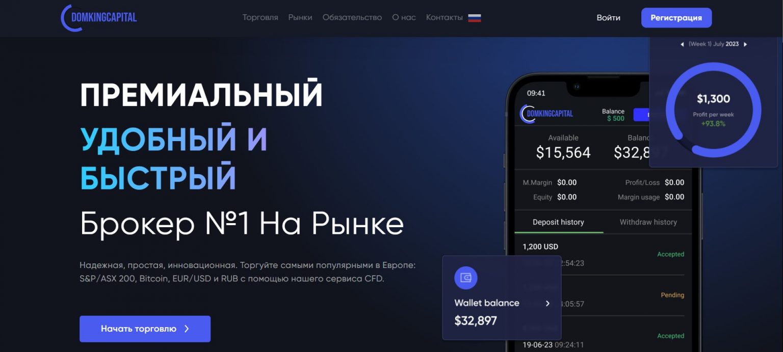 Domking Capital LTD (domkingcapitalltd.com) предлагает торговлю различными активами, включая криптовалюты и индексы. На сайте представлены различные типы счетов с бонусами до 100% и обещаниями гарантированной доходности до 18% в месяц. Однако, такие обещания вызывают серьезные сомнения в надежности компании.