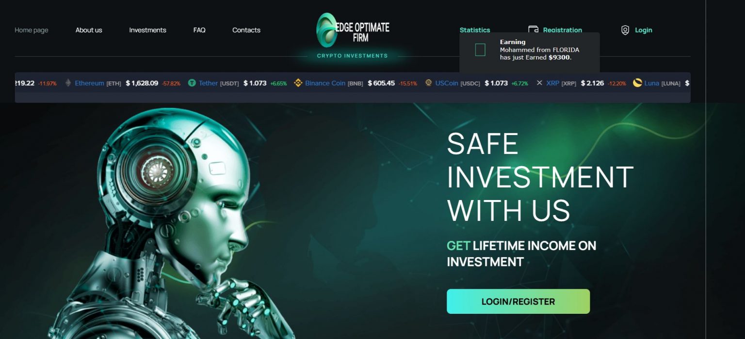EdgeOptimateFirm.com утверждает, что предоставляет безопасные инвестиционные услуги с использованием уникального торгового робота. Однако, при детальном анализе возникают серьёзные сомнения в его легитимности.
