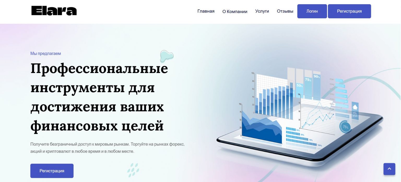 Elara PLC (elaraplc.com) позиционирует себя как международного брокера с широким спектром услуг. На сайте представлены три типа счетов: Basic ($250), Standard ($500) и Premium ($1000). Компания обещает доступ к мировым рынкам и круглосуточную поддержку. Однако, конкретные данные о лицензии и регулирующем органе отсутствуют.
