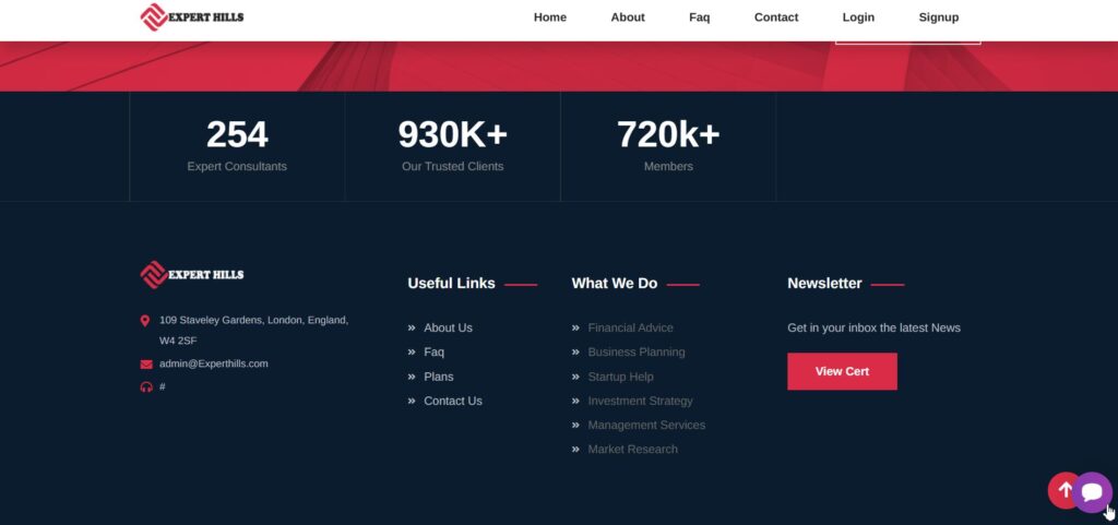 Брокер Experthills (experthills.com) заявляет о многолетнем опыте и профессионализме команды. На сайте говорится о выгодных условиях и современном подходе к торговле. Однако проверка домена показывает, что сайт создан недавно. Это ставит под сомнение слова о длительной работе компании. Кроме того, отсутствуют подтверждения существования офиса и юридического адреса.