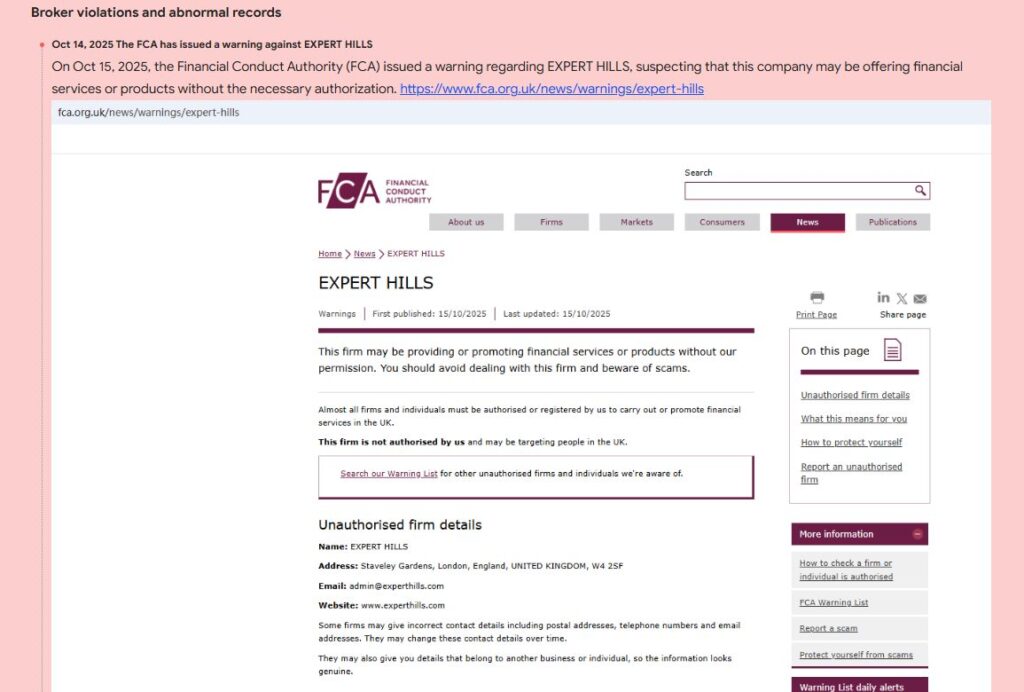 Experthills нельзя назвать надёжным партнёром. У компании нет лицензии, прозрачности и подтверждённой репутации. Все признаки указывают на высокий риск потери средств. Лучше выбирать регулируемых брокеров с проверенной историей и ясными условиями.