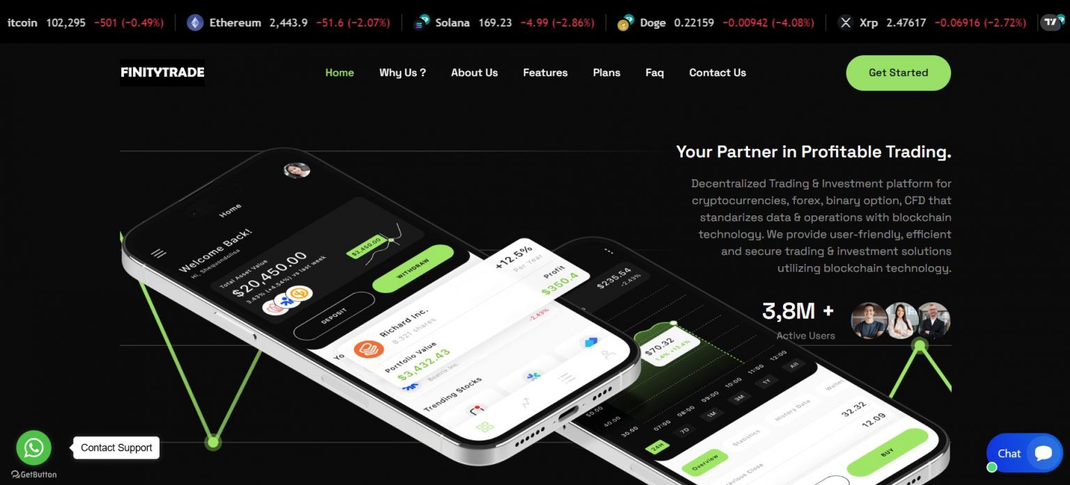 FinityTrade (finitytrade.net) позиционирует себя как международную торговую платформу, предлагая доступ к различным финансовым инструментам. Компания утверждает, что предоставляет услуги в области криптовалют, форекс, бинарных опционов и CFD. Однако, при более детальном рассмотрении возникают серьезные сомнения в надежности этого брокера.