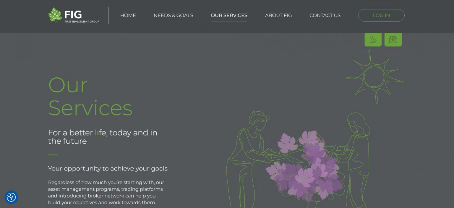 First Investment Group (first.com.jo) заявляет о предоставлении финансовых услуг с 2006 года. Компания предлагает клиентам помощь в достижении различных финансовых целей. Однако на сайте отсутствует информация о владельцах и ключевых лицах компании, что вызывает сомнения в ее прозрачности.