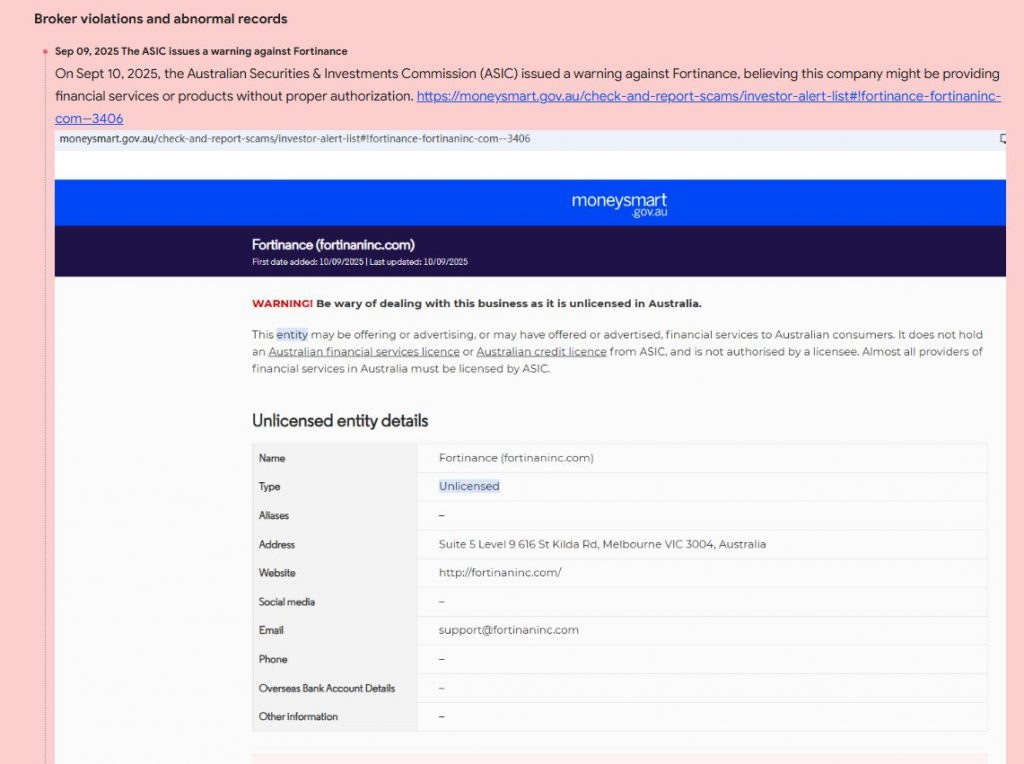 Fortinaninc брокер мошенник, использующий стандартную схему обмана клиентов. Сначала обещают стабильную прибыль и минимальные риски. После внесения депозита клиент видит искусственную «прибыль» на счёте. Когда он пытается вывести деньги, начинаются задержки и блокировки. Затем брокер перестаёт отвечать, а средства безвозвратно теряются.