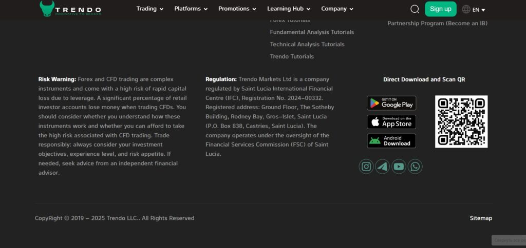 FXTrendo позиционирует себя как международного брокера с богатым опытом. На сайте говорится о высоких стандартах и честных условиях. Но проверить эту информацию невозможно. Юридические данные отсутствуют, а владельцы компании не раскрыты. Возраст домена небольшой, что вызывает сомнения в устойчивости бизнеса.