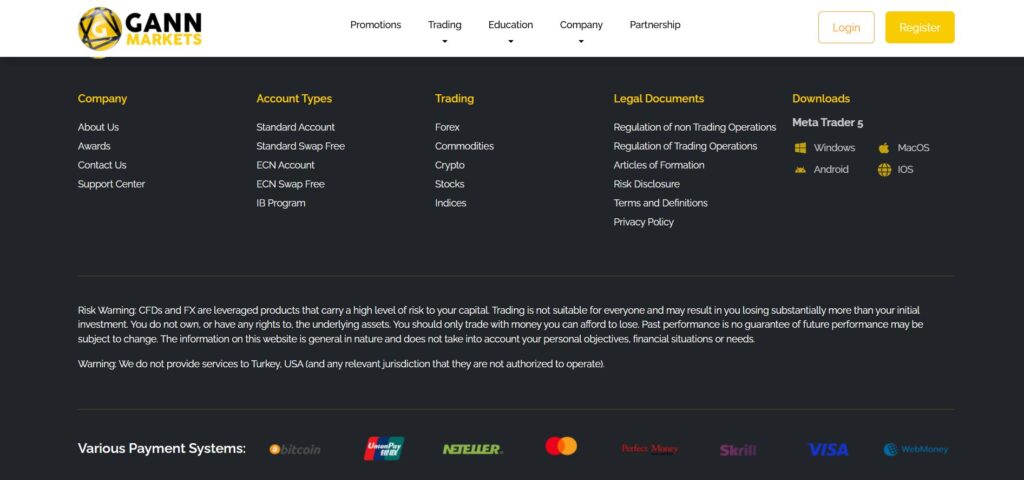 Gann Markets (gannmarkets.com) позиционирует себя как международного брокера с более чем 150 инструментами.