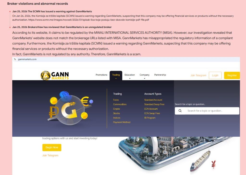 Gann Markets (gannmarkets.com) демонстрирует признаки ненадежного брокера.