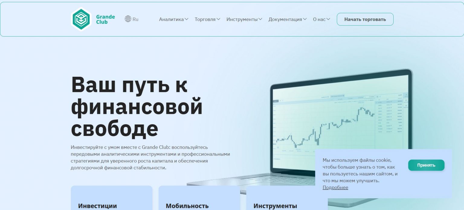 Компания заявляет о наличии собственной торговой платформы с доступом к различным финансовым инструментам, включая валютные пары, акции и криптовалюты. Однако подробности о функционале платформы и ее надежности отсутствуют. Недобросовестные брокеры нередко используют поддельные терминалы, которые позволяют манипулировать котировками и принудительно закрывать сделки в убыток. Это еще один признак того, что GrandeClub мошенничество, а доверять свои деньги такому брокеру опасно.