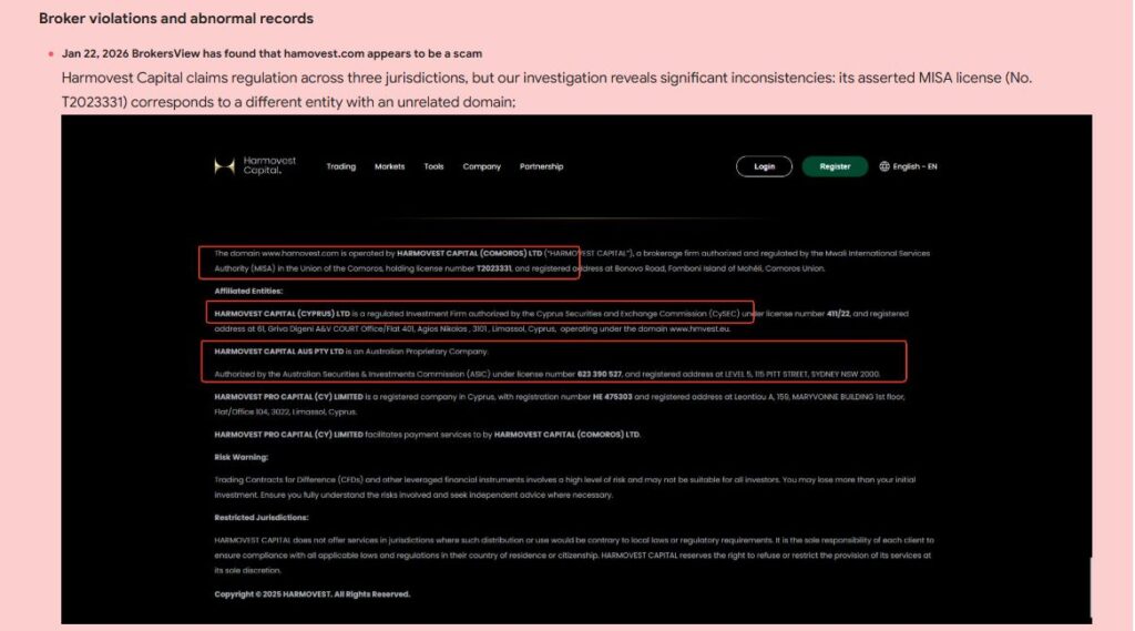 Hamovest (hamovest.com) указывает офшорную регистрацию, лицензии мировых регуляторов не предоставляет.