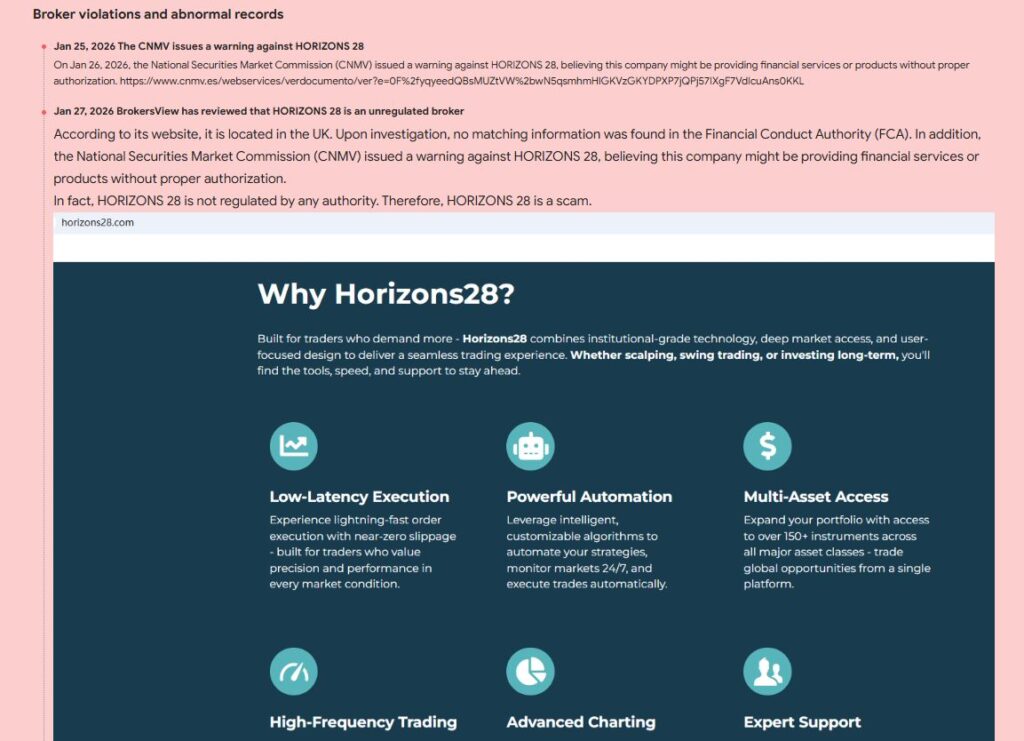 Horizons28 (horizons28.com) вызывает обоснованные опасения у трейдеров.