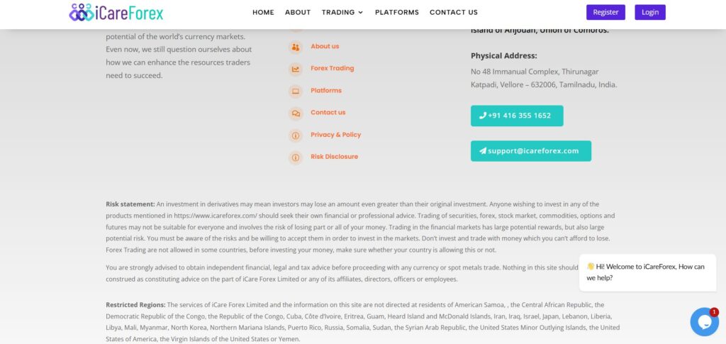 ICare Forex позиционирует себя как международную платформу с выгодными условиями. На сайте указали, что брокер предоставляет торговлю валютами, акциями и индексами. Но проверить эти утверждения невозможно. Юридическая информация отсутствует, а данные о владельцах не опубликованы. Возраст домена небольшой, что вызывает сомнения в опыте компании.