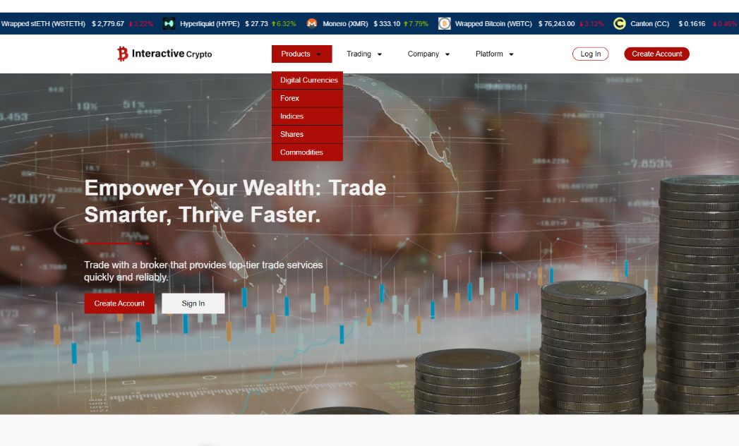 InteractiveCrypto позиционирует себя как современную криптовалютную торговую платформу.