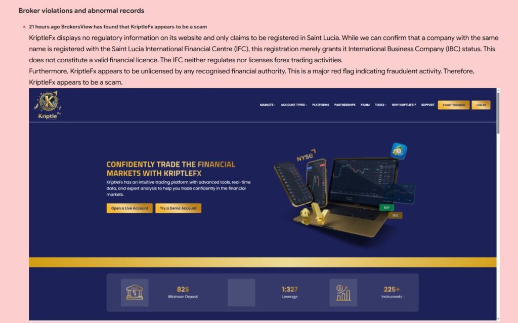 Сотрудничество с KriptleFX связано с серьезными рисками.
