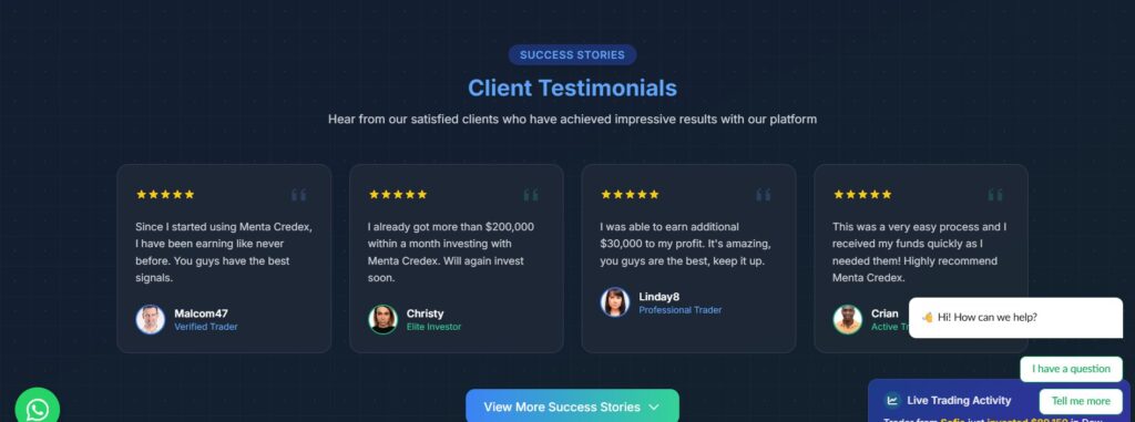 Отзывы о Menta Credex (mentacredex.com) в интернете в основном негативные. Люди пишут о проблемах с выводом средств и агрессивных звонках менеджеров. После внесения депозита брокер перестаёт выходить на связь. Некоторые пользователи сообщают о блокировке аккаунтов без предупреждения. Всё это типичные признаки мошеннических схем, характерных для нелицензированных компаний.