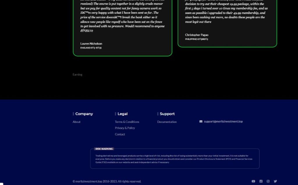 Merits Investment (meritsinvestment.top) демонстрирует признаки мошенничества.