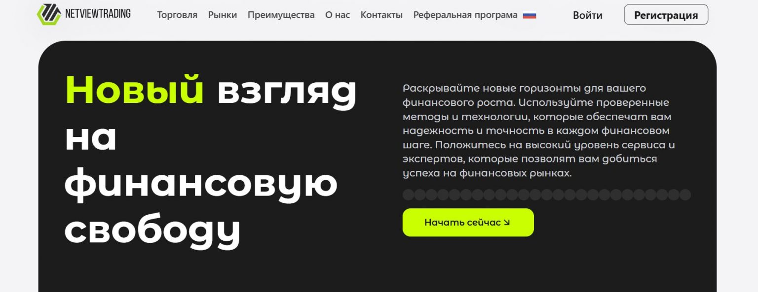 NetView Trading (netviewtrading.com) позиционирует себя как современная торговая платформа с более чем 500 000 пользователей по всему миру. Компания утверждает, что предоставляет доступ к различным финансовым инструментам, включая акции, криптовалюты, сырьевые товары и валютные пары. Однако на сайте отсутствует информация о дате основания компании и ее истории, что вызывает сомнения в ее прозрачности и надежности.