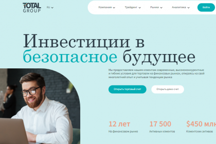 Основная информация о компании Total Group позиционирует себя как опытного брокера с…