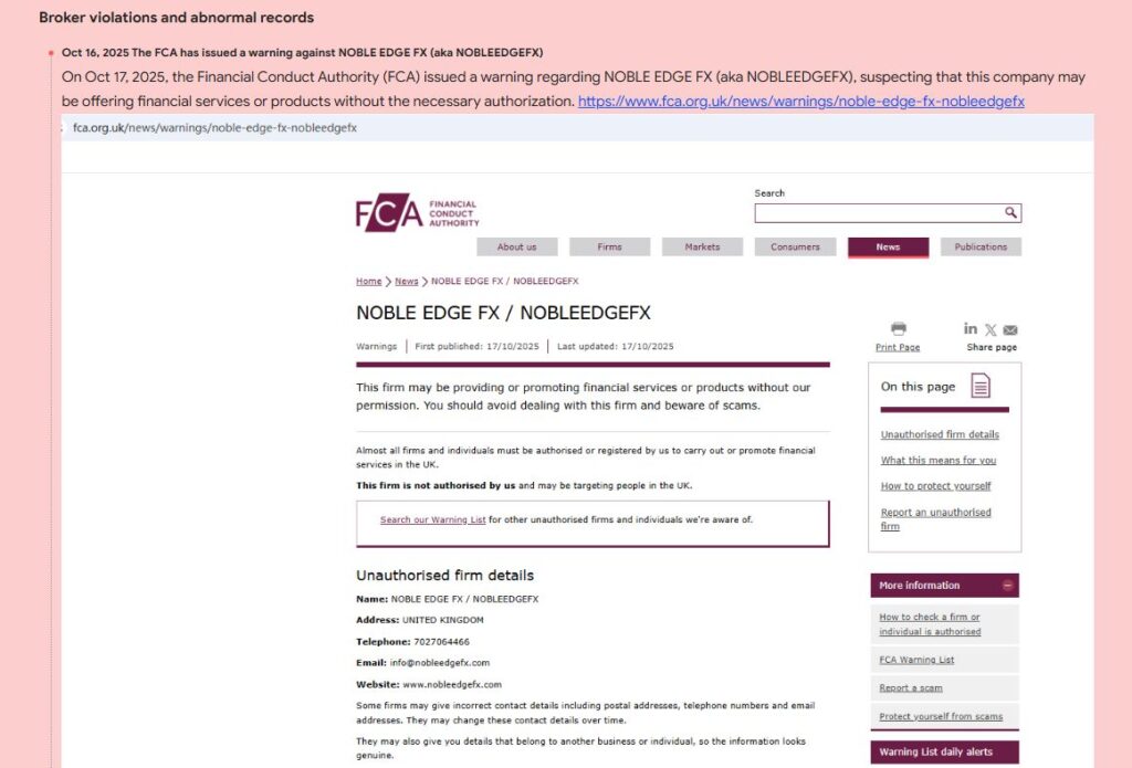 Брокер NobleEdgeFX (nobleedgefx.com) заявляет, что предлагает CFD-торговлю на акции, криптовалюту, валюты. Сайт обещает «современные инструменты» и «конкурентные спреды». Однако проверка не подтверждает реальные данные о лицензии и регистрации компании. То есть несмотря на громкие заявления, остаётся много вопросов. Трейдерам важно понимать: красивый сайт не заменит официальные документы.