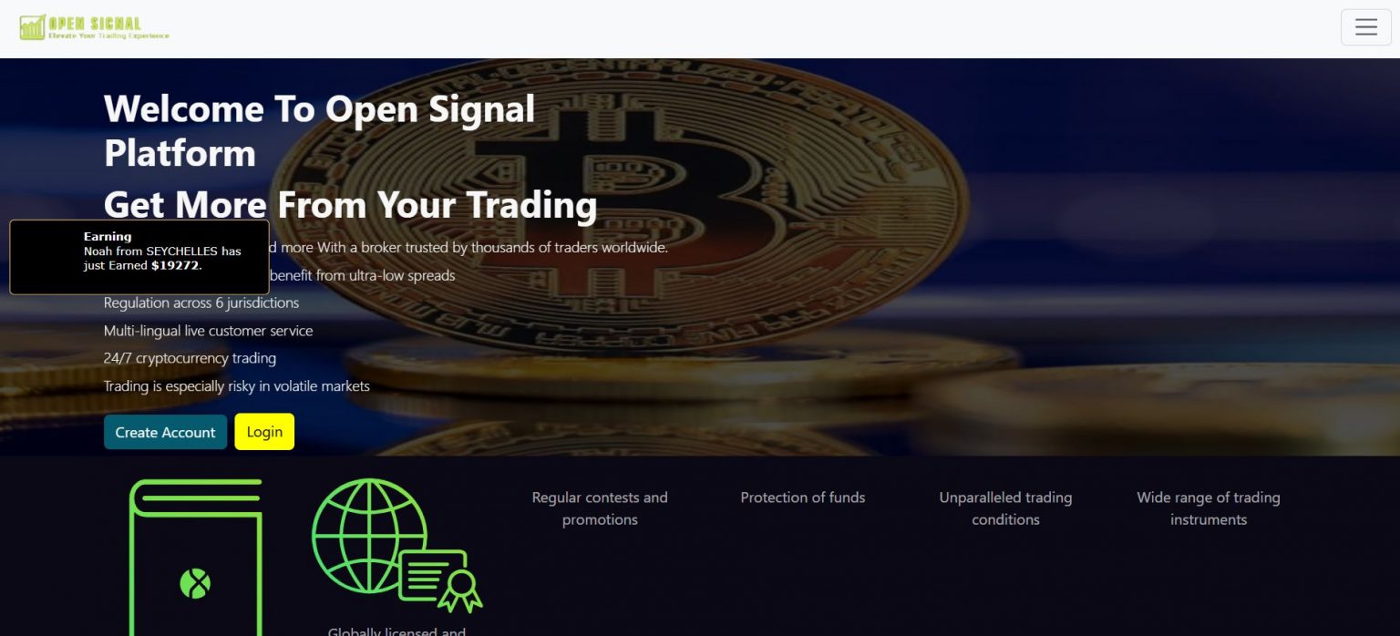 Open Signal (opensigonline.com) утверждает, что предлагает торговлю криптовалютой, форексом, сырьём. Они рассказывают о современных платформах и выгодных стратегиях. Однако на сайте отсутствуют подробности об условиях торговли и лицензиях.