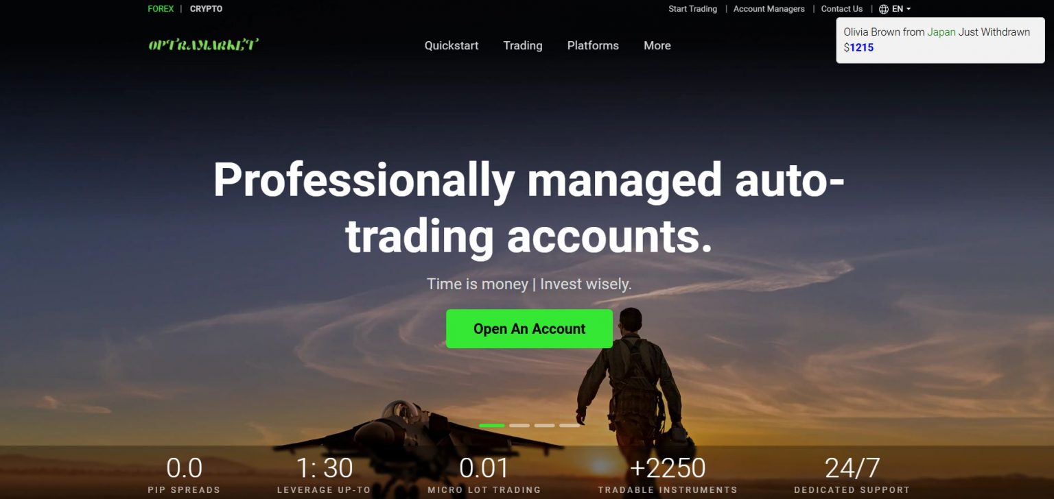 OptraMarket (optramarket.com) позиционирует себя как надежного брокера с международным охватом. Компания обещает быстрый доступ к рынкам и широкий выбор инструментов. Среди них заявлены акции, валютные пары, криптовалюты и сырьевые товары. Однако проверка информации показывает отсутствие прозрачности и реальные признаки риска.