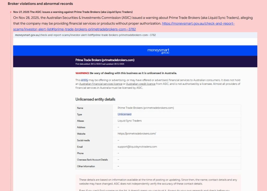 PrimeTradeBrokers (primetradebrokers.com) демонстрирует низкую прозрачность и слабую юридическую основу.
