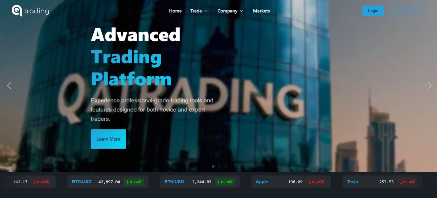 QATrading (qatrading.com) позиционирует себя как профессиональную торговую платформу с доступом к MetaTrader 5. Компания утверждает, что предоставляет передовые торговые решения и высокую безопасность для клиентов. Однако, при более детальном рассмотрении возникают серьезные сомнения в надежности этого брокера.