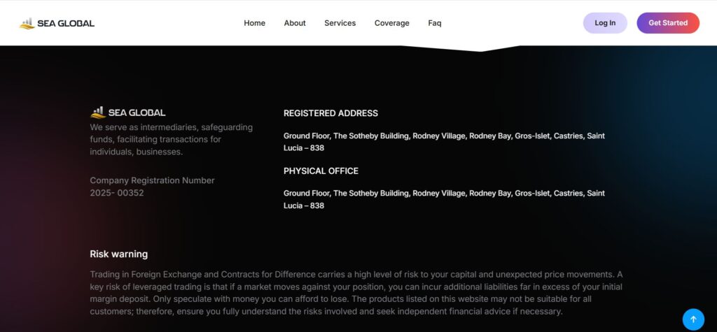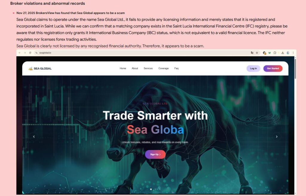 Sea Global не публикует подтверждённые лицензии финансовых регуляторов.