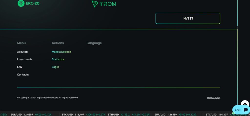 На сайте SignalTradeProviders указано, что пользователю доступен терминал и сигналы «от экспертов». Однако отсутствует проверка работы платформы, нет доказательств реального исполнения сделок. Пользователи могут столкнуться с задержками, ошибками и отсутствием поддержки. Это также характерно для схем без реальной инфраструктуры торговли.