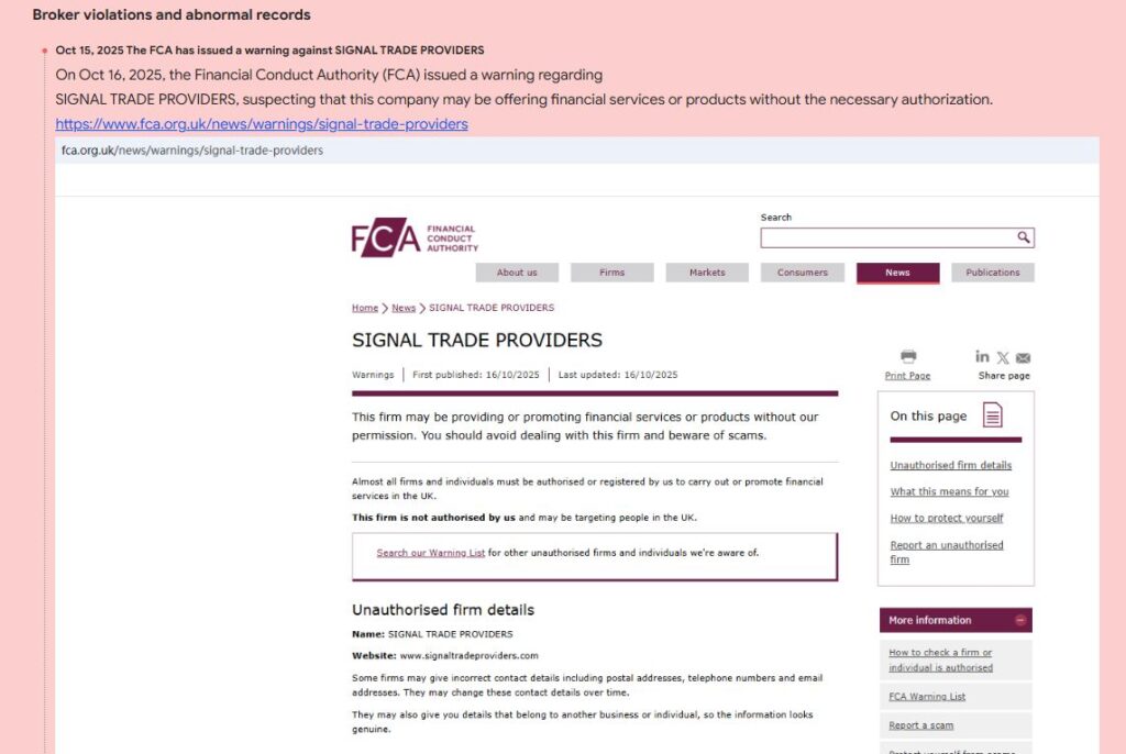 SignalTradeProviders (signaltradeproviders.com) вызывает множество тревожных сигналов. Нет лицензии, условия работы остаются непрозрачными, отзывы клиентов негативны. Инвестиции с этим сервисом крайне рискованны. Лучше учитывать только проверенных брокеров и сигнал-провайдеров с лицензией, отчётностью и реальной репутацией.