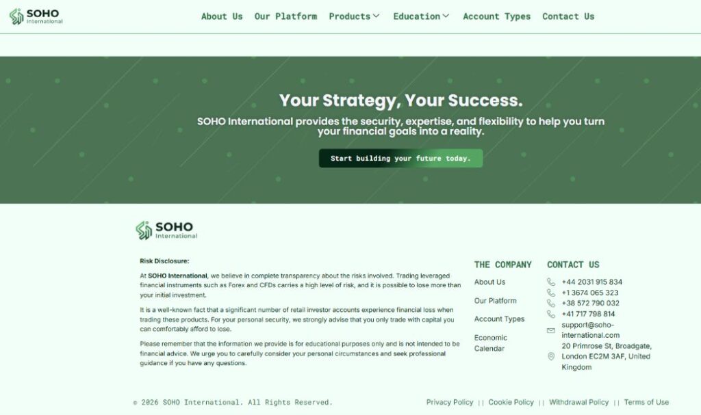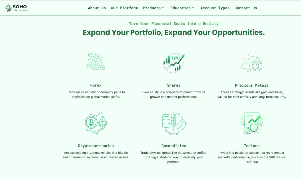 Soho International (soho‑international.com) позиционирует себя как международный брокер.