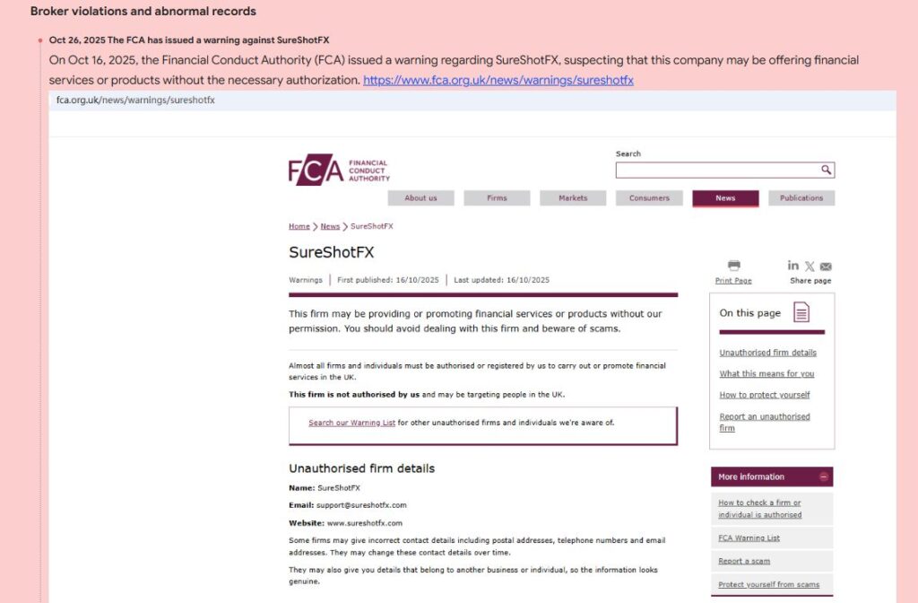 SureShotFX (sureshotfx.com) вызывает серьёзные опасения: регулирование не подтверждено, условия скрыты, отзывы отрицательные. Сотрудничество с этим сервисом может привести к серьёзным финансовым потерям. Рекомендуется инвестировать только через компании с лицензией, проверенной историей и понятной структурой работы.