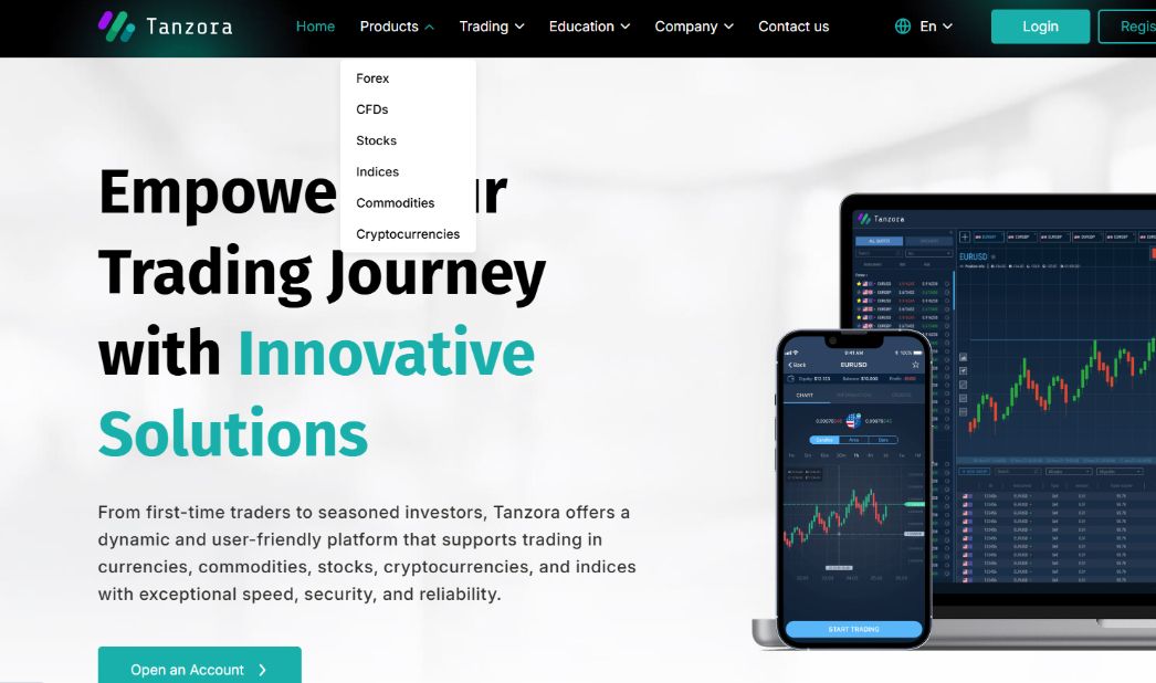 Сайт Tanzora обещает удобную торговлю на глобальных рынках.