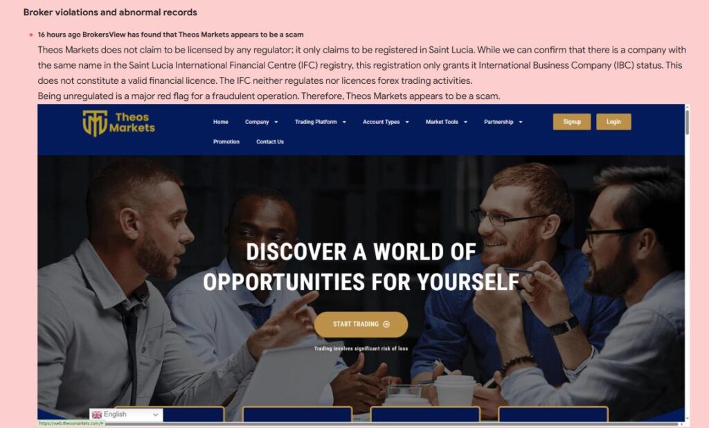 Theos Markets (theosmarkets.com) нельзя считать надежным брокером.