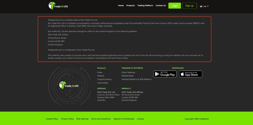 TradeAI CFD (tradeaicfd.com) упоминает лицензии без проверяемых данных.