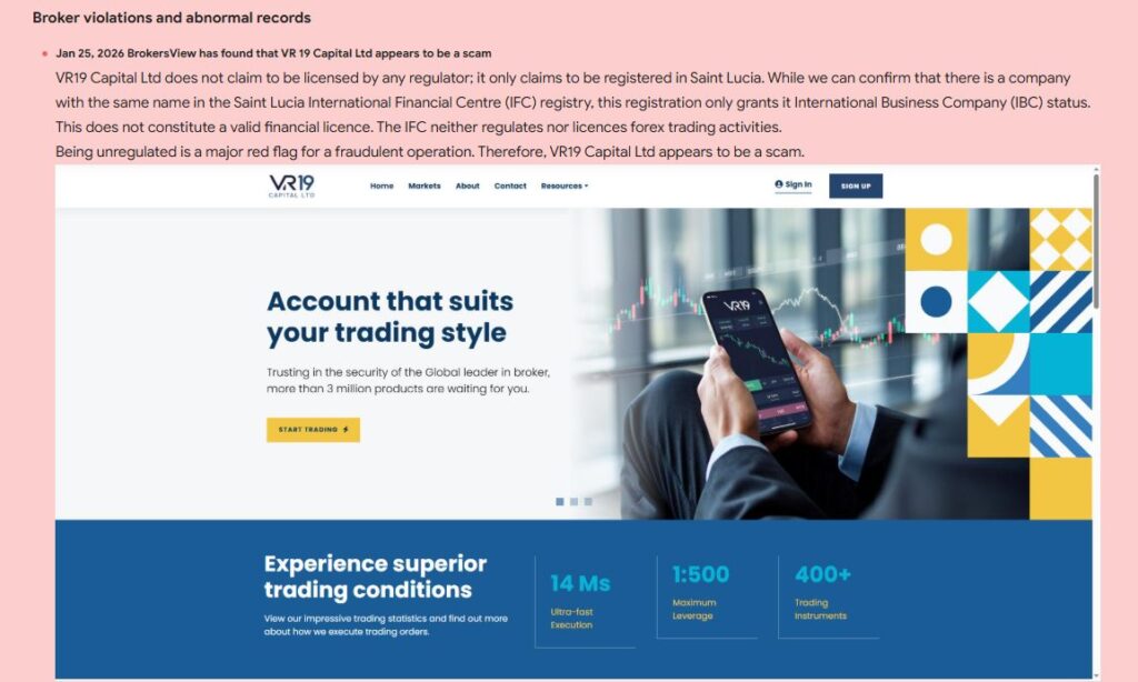 Анализ показывает, что VR19Capital вызывает серьёзные сомнения.