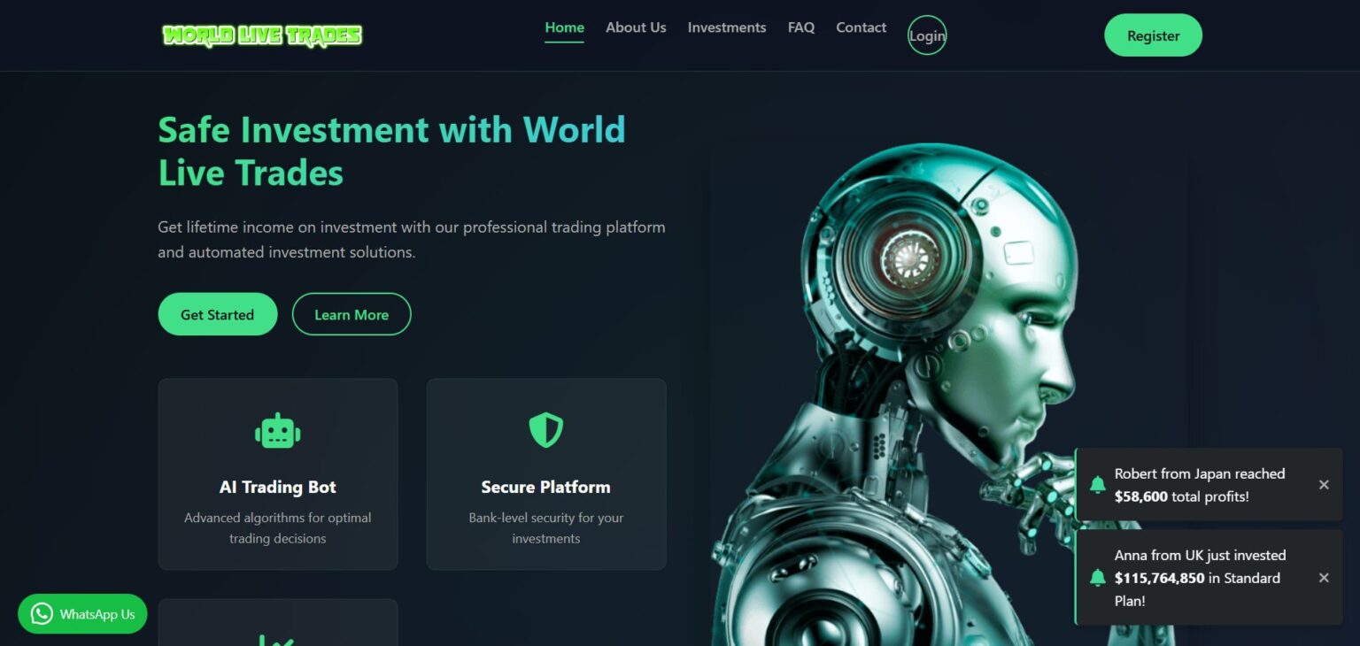 Сайт WorldLiveTrade заявляет об использовании AI-бота и современной платформы. Однако нельзя найти достоверные отзывы о функционировании платформы или исполнении сделок. Нет сведений о том, что приложение реально выводит сделки на рынок. Пользовательская поддержка и техническая база остаются неизвестными. Это усиливает подозрения, что платформа может быть фиктивной.