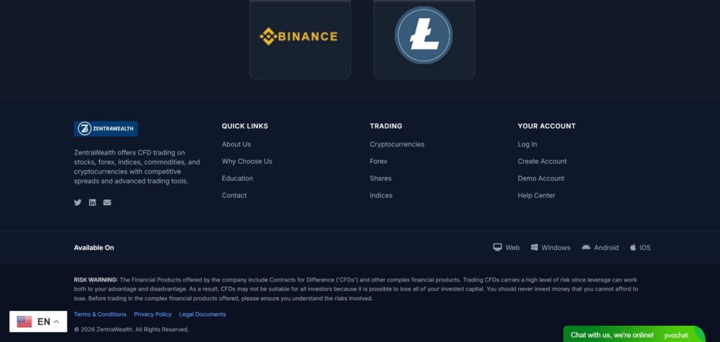 Брокер ZentraWealth ведет деятельность через собственный сайт.