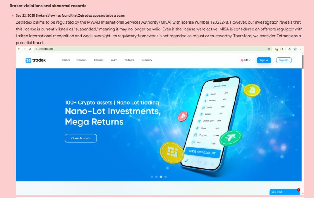 Zetradex (zetradex.com) демонстрирует множество признаков мошенничества. Рекомендуем полностью избегать сотрудничества с этой платформой. Выбирайте только лицензированных брокеров с прозрачной репутацией. Если нужно — помогу подобрать надёжные альтернативы и провести сравнительный обзор.